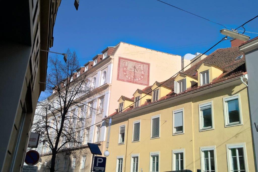 Die Weikhard-Uhr am Grazer Hauptplatz kennt wohl ein jeder, der sich einmal an diesem zentralen Treffpunkt in der Innenstadt verabredet hat. Wenige nur aber heben ihren Blick höher: Zwischen den Fensterreihen eingefügt zeigt hier eine weitere, der Gebäudefassade vorgehängte tafelförmige Uhr bei Sonnenschein, ob man auch wirklich pünktlich war.