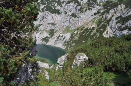 Die kürzere Variante führt uns vom Silberkarsee auf derselben steinigen Strecke zurück zur Silberkarhütte, dann westlich an ihr vorbei ein kurzes Wegstück am Hang entlang und durch den Wald steil hinunter. Nach 4 ½ bis 5 Stunden ist der Parkplatz beim Klammeingang erreicht.