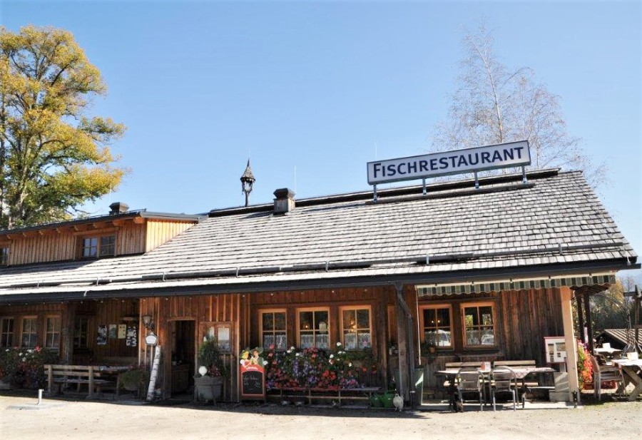 Das gemütlich-urige Lokal der Familie Rieger liegt romantisch zwischen den Teichanlagen mit Forellen, Saiblinge und Karpfen und direkt am Fuße des Schlosses Trautenfels. Vor seinem Gastgarten ragt das mächtige Grimmmingmassiv in den Himmel und zwischen den Bäumen kann man hoch oben auf dem Bergkamm die beiden Kirchen von Pürgg erspähen. Seit 1992 gibt es hier täglich frisch gefangenen Fisch, gebraten, gebacken, pochiert oder geräuchert. Und im Winter sorgt ein großer Kachelofens für eine heimelige Atmosphäre.